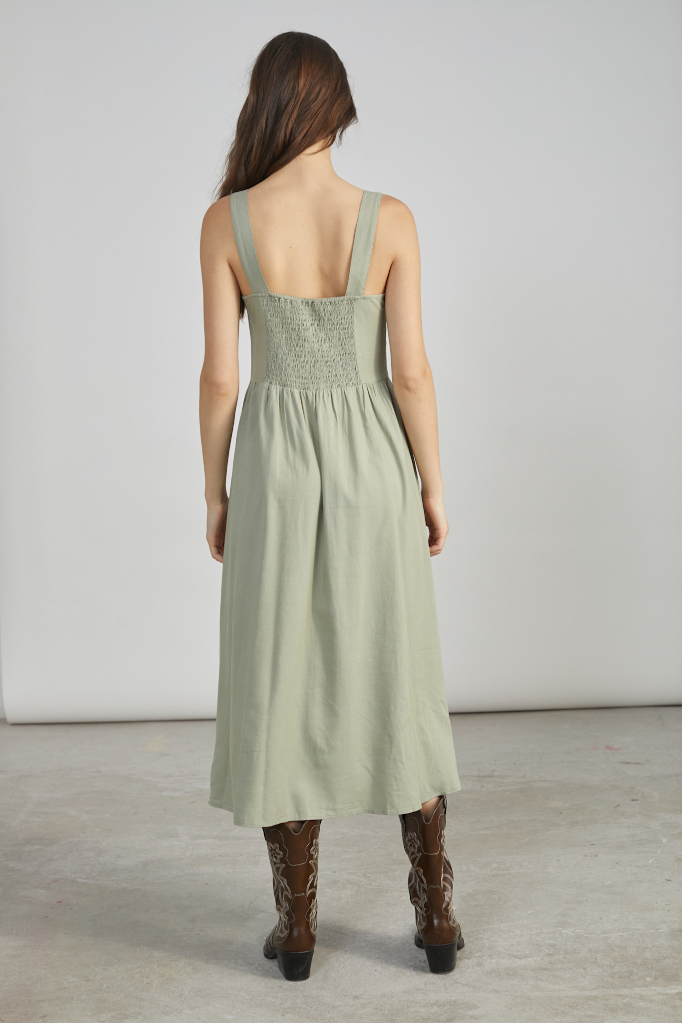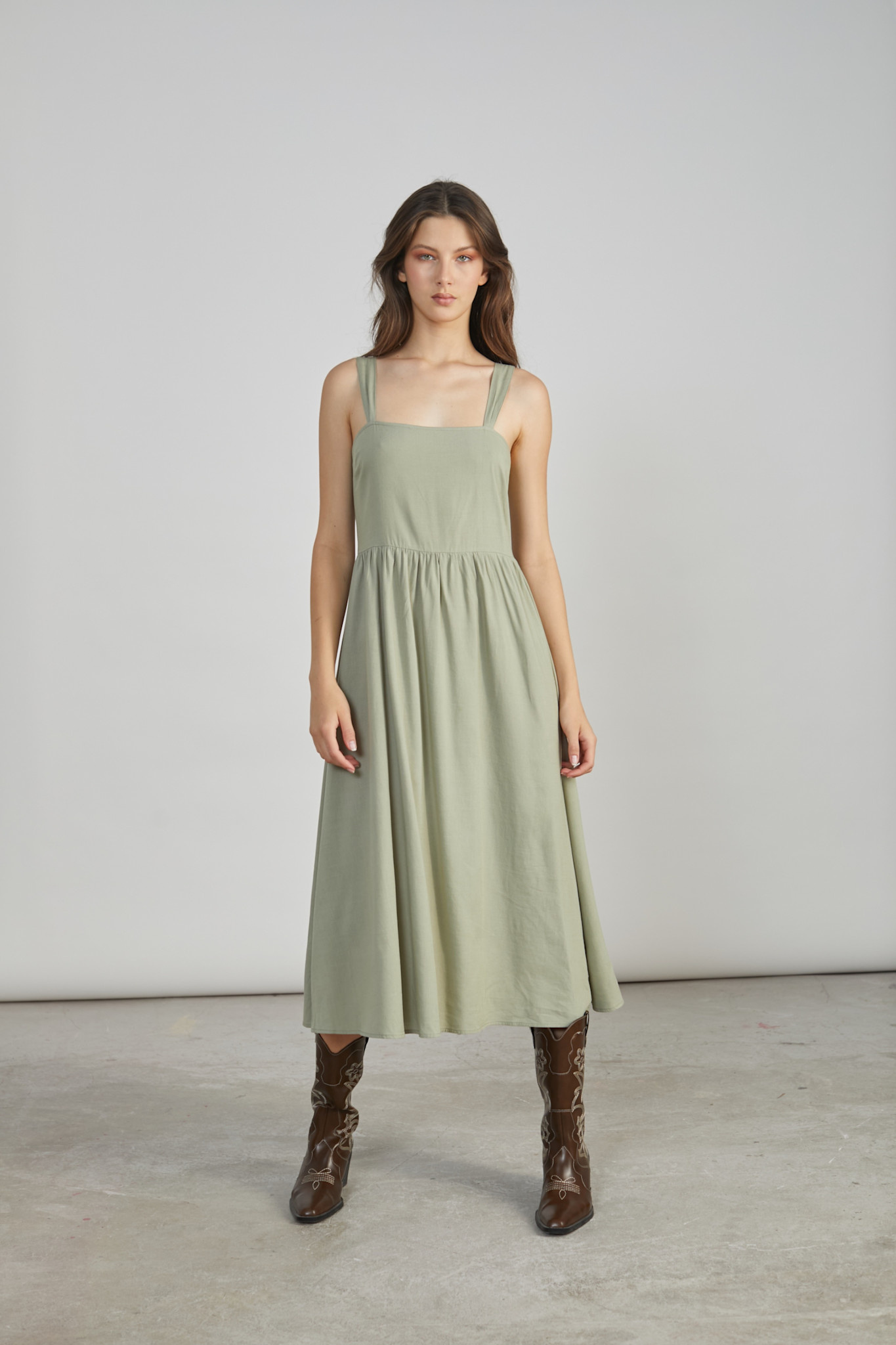 24 colours Elsa romantic linen dress Matcha Green
