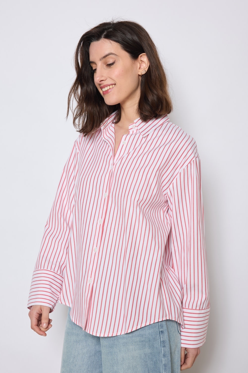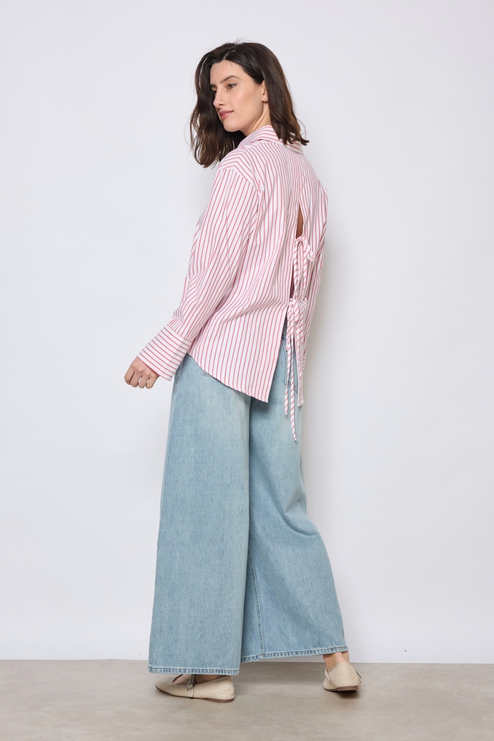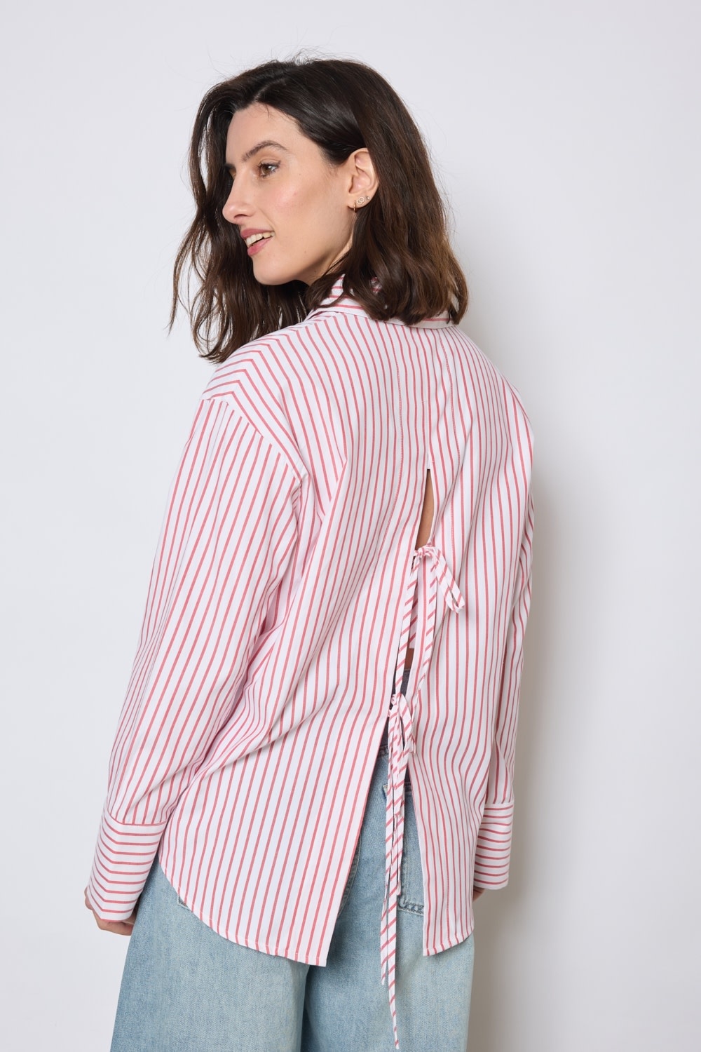 • Steph stripped blouse with bow detail at the back Red